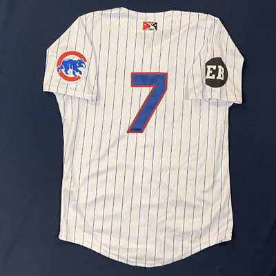 Myrtle Beach Pelicans 2015 LET'S PLAY TWO #7 Size 46 Clubhouse Issued Jersey. Worn during the 2nd Game of any Doubleheader during the 2nd Half of 2015 to celebrate Ernie Banks and his iconic "Let's Play Two" phrase. Worn by Daniel Lockhart.