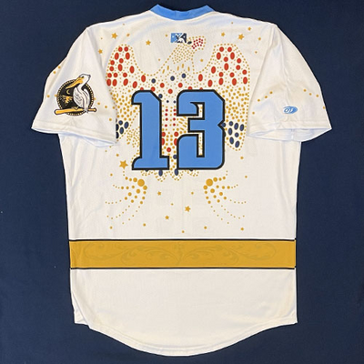 Myrtle Beach Pelicans 2018 Rhinestone Jumpsuit #13 Size 46 Clubhouse Issued Jersey for the 7/12/2018 Game, which was rained out. Jersey not worn in a game.