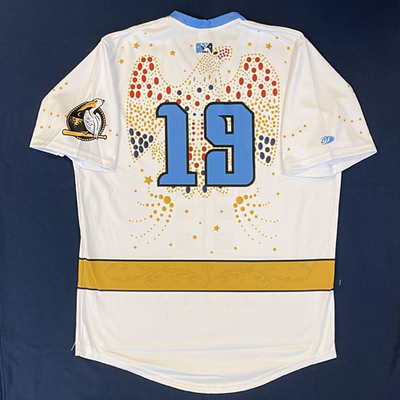 Myrtle Beach Pelicans 2018 Rhinestone Jumpsuit #19 Size 48 Clubhouse Issued Jersey for the 7/12/2018 Game, which was rained out. Jersey not worn in a game.