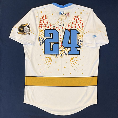 Myrtle Beach Pelicans 2018 Rhinestone Jumpsuit #24 Size 46 Clubhouse Issued Jersey for the 7/12/2018 Game, which was rained out. Jersey not worn in a game.
