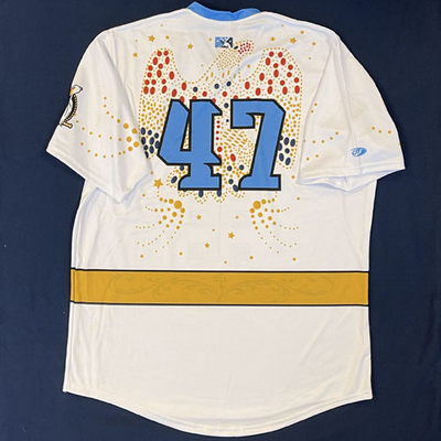 Myrtle Beach Pelicans 2018 Rhinestone Jumpsuit #47 Size 50 Clubhouse Issued Jersey for the 7/12/2018 Game, which was rained out. Jersey not worn in a game.