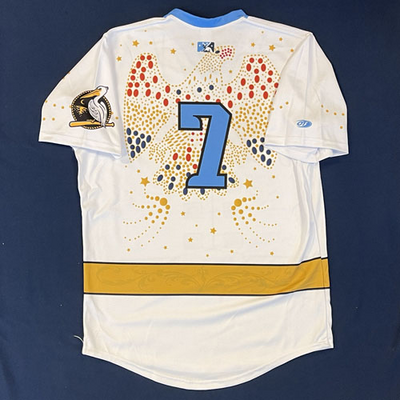 Myrtle Beach Pelicans 2018 Rhinestone Jumpsuit #7 Size 46 Clubhouse Issued Jersey for the 7/12/2018 Game, which was rained out. Jersey not worn in a game.