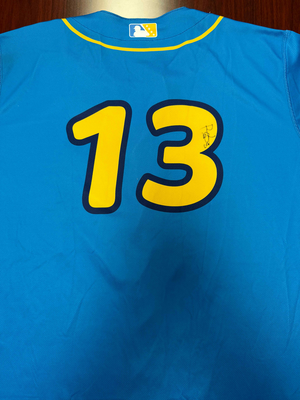 This jersey was signed and worn by pitcher, #13 Robinson Ortiz during the Tulsa Drillers Noodlers Nights from Friday, July 18th to Sunday, July 21st 2025 at ONEOK Field. This jersey is a size 46 and proceeds will help support the Tulsa Drillers Foundation.