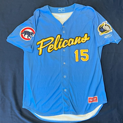 MYRTLE BEACH PELICANS ALTERNATE BLUE JERSEY #15 SIZE 46