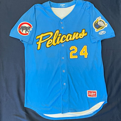 MYRTLE BEACH PELICANS ALTERNATE BLUE JERSEY #24 SIZE 46