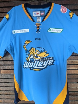 You're bidding on a blue game worn Toledo Walleye jersey of #9, Troy Loggins, from the 2019-20 Walleye season. Loggins appeared in 45 games for the Walleye this past season in which he scored a total of 25 points (11 goals, 14 assists) and collected 41 penalty minutes This official game worn jersey is produced by Athletic Knit and measures XL. Jersey will come with a COA provided by the Toledo Walleye.
