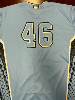 This jersey was unassigned during the Tulsa Drillers Muscogee (Creek) Nation Tribute Night, honoring the native Creek Nation Tribe (featuring Tulsa spelled in the Creek language) on Friday, May 23rd 2025 at ONEOK Field. This jersey is #46 and is a size 52. Proceeds will help support the Muscogee (Creek) Nation Scholarship Fund.