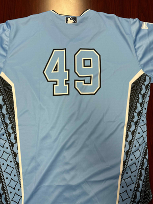 This jersey was unassigned during the Tulsa Drillers Muscogee (Creek) Nation Tribute Night, honoring the native Creek Nation Tribe (featuring Tulsa spelled in the Creek language) on Friday, May 23rd 2025 at ONEOK Field. This jersey is #49 and is a size 50. Proceeds will help support the Muscogee (Creek) Nation Scholarship Fund.